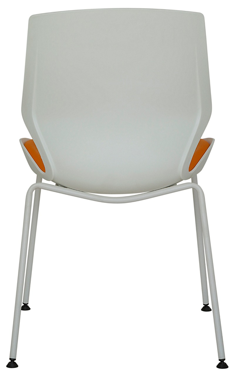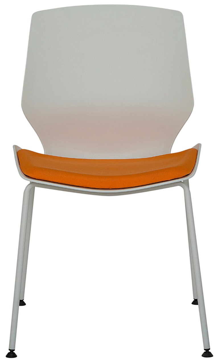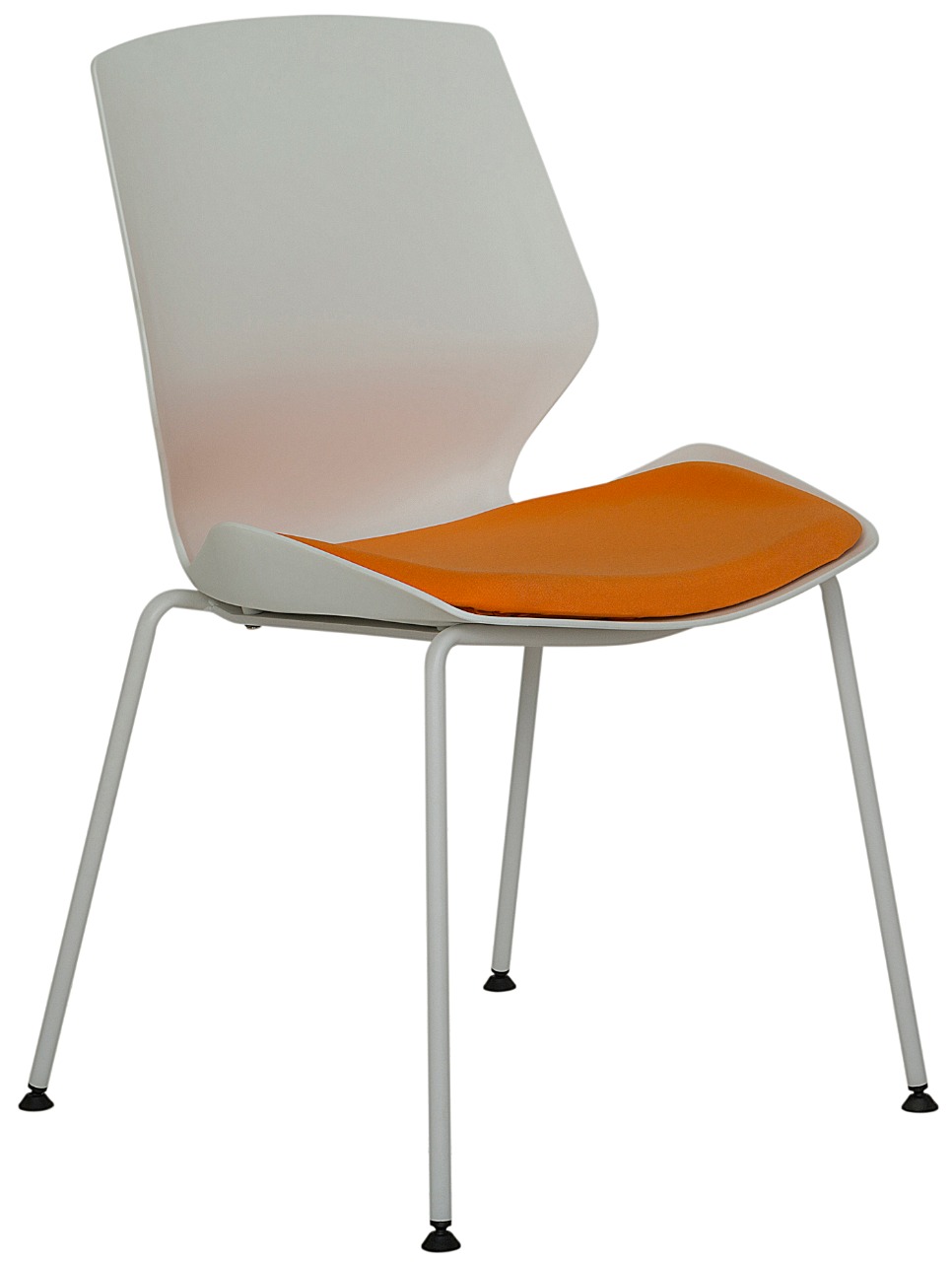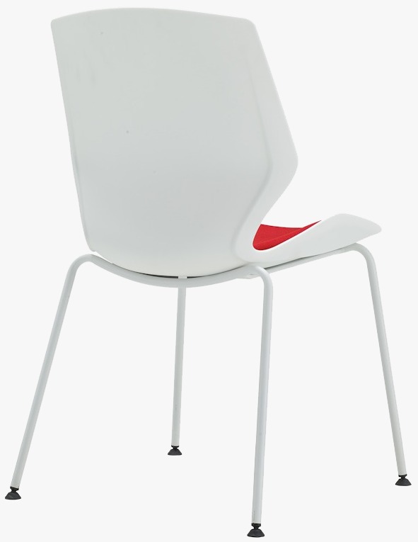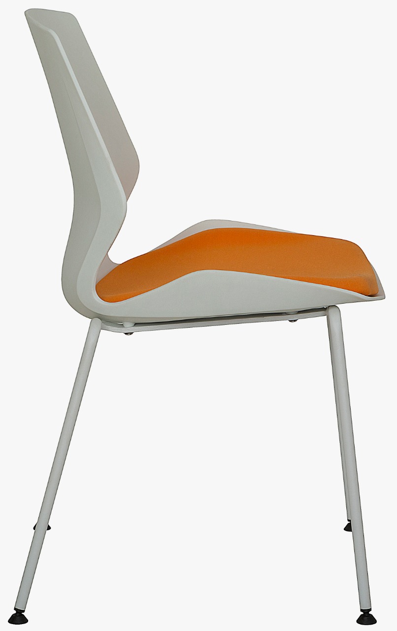 Comoda silla en concha rigida color blanco, con asiento acojinado y tapizado en color a elección.