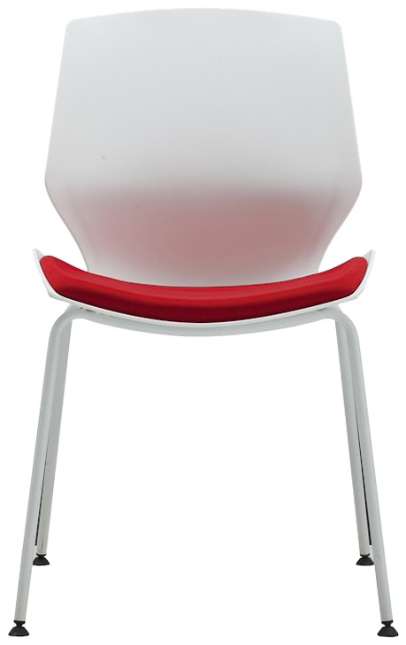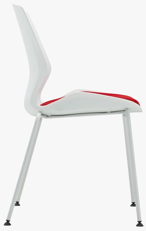 – En concha de polipropileno en color blanco, asiento tapizado en tela color negro (de línea) o color a elección (consultar colección de tapices).